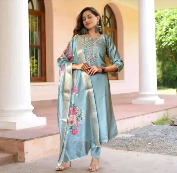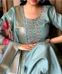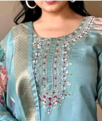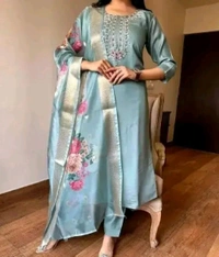 - Complete 3-Piece Set: This suit includes a beautifully designed top, matching bottoms, and a coordinating dupatta, giving you a cohesive and polished look.