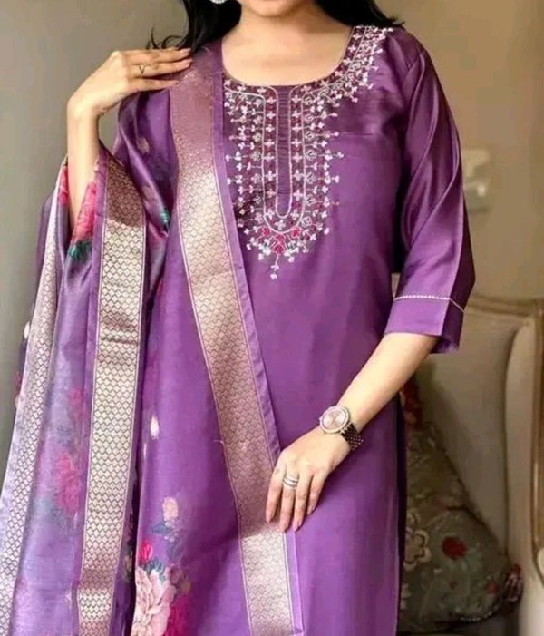 RAYON NECK EMROIDERY 3 PC SUIT FOR WOMAN FASHION