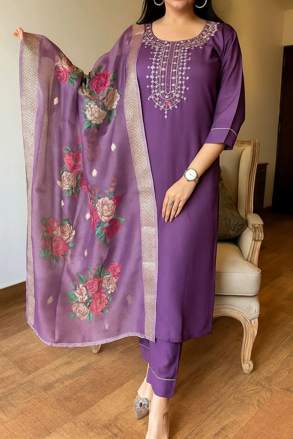 RAYON NECK EMROIDERY 3 PC SUIT FOR WOMAN FASHION