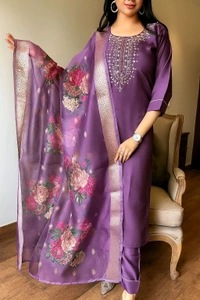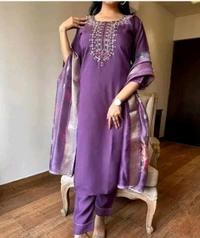 - Complete 3-Piece Set: This suit includes a beautifully designed top, matching bottoms, and a coordinating dupatta, giving you a cohesive and polished look.