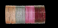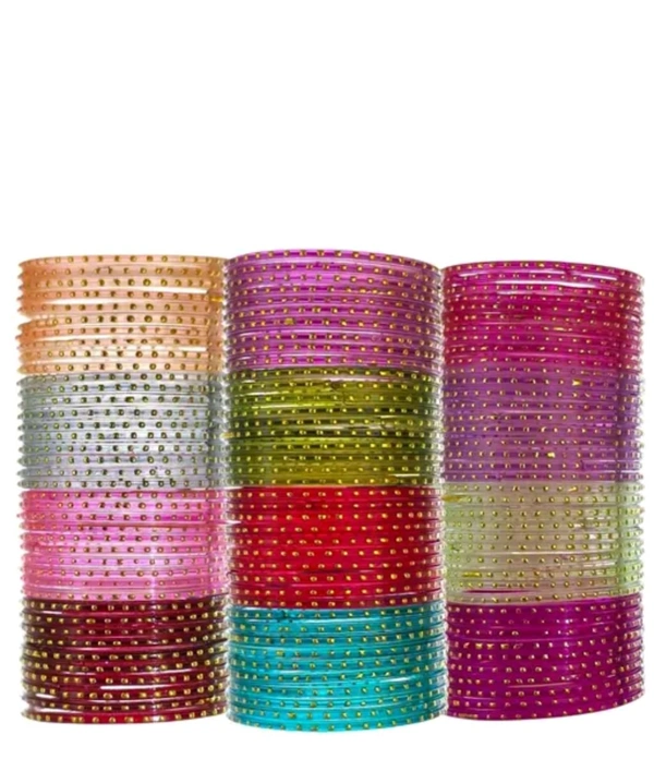 Traditional Indian Glass Bangles Set, Multicolor Studded Bracelets, Fashion Jewelry Collection for Women, 12 Colors